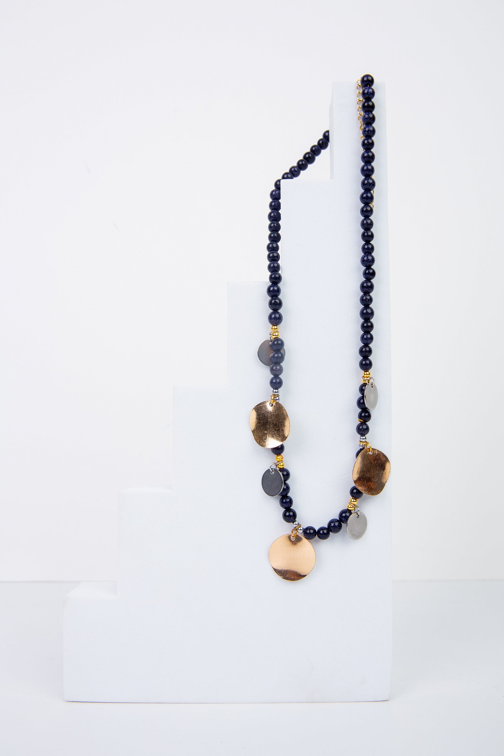 45 cm natural Blue star stone and gold n silver coin charms